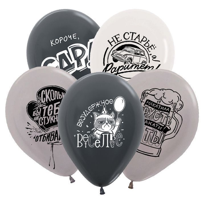Набор воздушных шаров "Черный юмор" состоит из 3х дизайнов с 2х сторонней печатью.